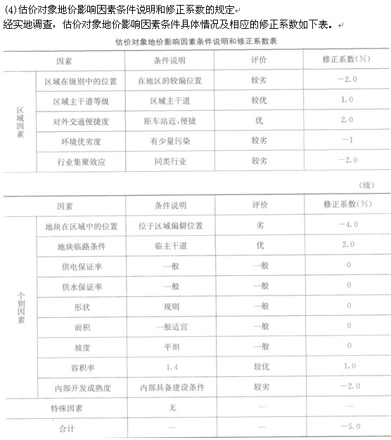 (4)估價對象地價影響因素條件說明和修正系數的規定
