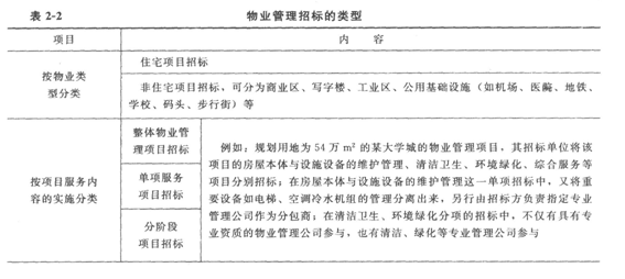 物業管理招標投標的內容與形式之物業管理招標的類型