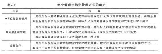 物業管理招標投標的內容與形式之物業管理招標中管理方式的確定
