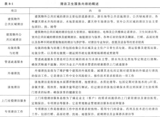 清潔衛生管理之清潔衛生服務內容的概述
