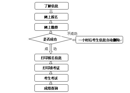 3.網上繳費。考生在報名信息填寫完成確認后,可立即進行網上繳費,且必須在一小時內完成繳費,否則考生信息將被自動刪除。