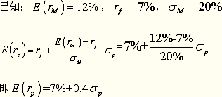 (補(bǔ)充)例:如果市場組合的期望收益率為12%,無風(fēng)險(xiǎn)收益率為7%,市場組合的標(biāo)準(zhǔn)差為20%,則資本市場線如何確定?