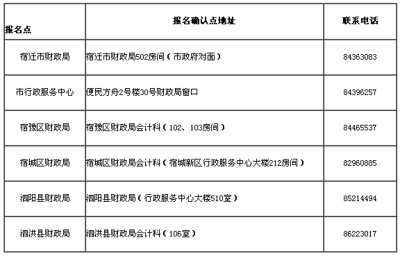 特別提醒:從2013年起,沭陽(yáng)縣考點(diǎn)單設(shè),沭陽(yáng)縣考生報(bào)名、考試由沭陽(yáng)縣財(cái)政局統(tǒng)一組織,相關(guān)事項(xiàng)咨詢沭陽(yáng)縣財(cái)政局會(huì)計(jì)局,咨詢電話83551380。