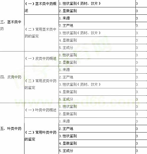 2013年初級中藥師專業技術資格考試大綱:第三部分 專業知識