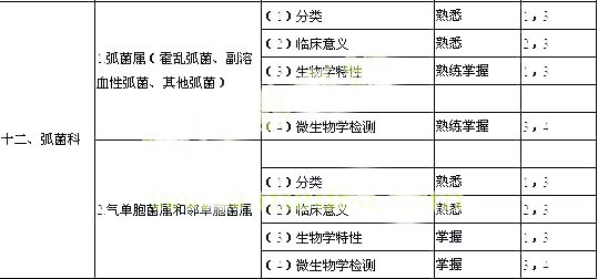 | (3)微生物學檢測 | 熟練掌握 | 3,4 | ||