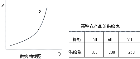 一般情況下,農產品供給曲線是一條自左下方向右上方傾斜的曲線,這表明價格與供給量呈同方向變化,因此,它的斜率為正值。