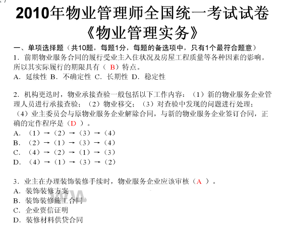 - 物業管理師《綜合能力》章節習題第七章2016-02-29