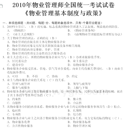 - 物業管理師《綜合能力》章節習題第八章2016-02-29