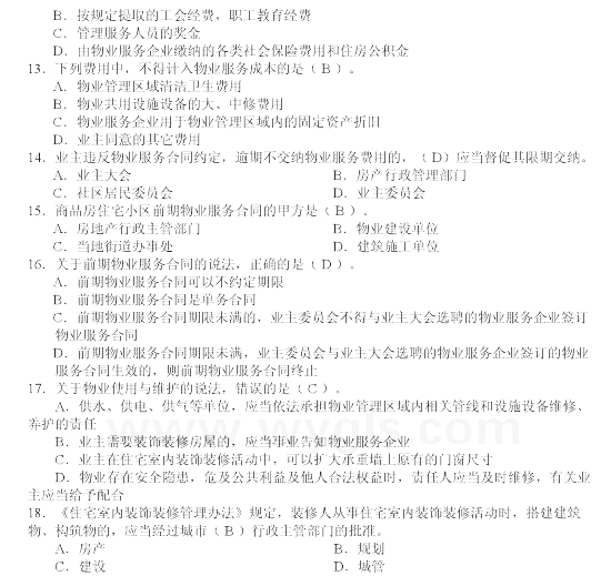 - 物業管理師《綜合能力》章節習題第十二章2016-03-01