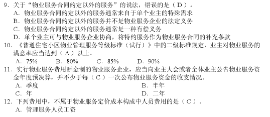- 物業管理師《綜合能力》章節習題第九章2016-03-01