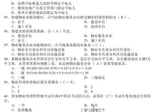 - 物業管理師《綜合能力》章節習題第七章2016-02-29
