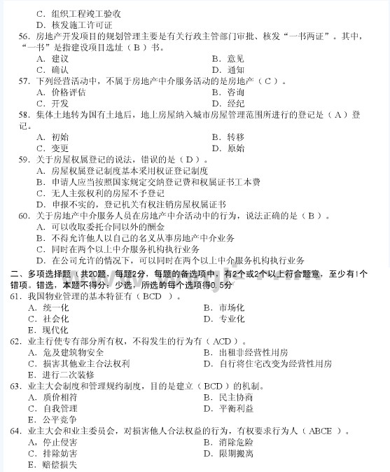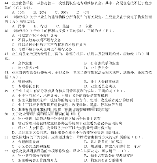 - 物業管理師《綜合能力》章節練習(匯總)2016-03-01