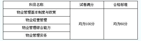 2012年物業(yè)管理師資格考試合格標準為各科試卷滿分均為100分,合格標準均為60分。