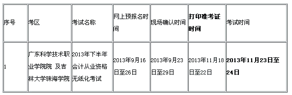 根據《2013年下半年珠海金灣區會計從業資格考試安排通知》: