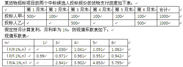 投標人乙500×(P/F 1% 3)+500×(P/F 1%6)