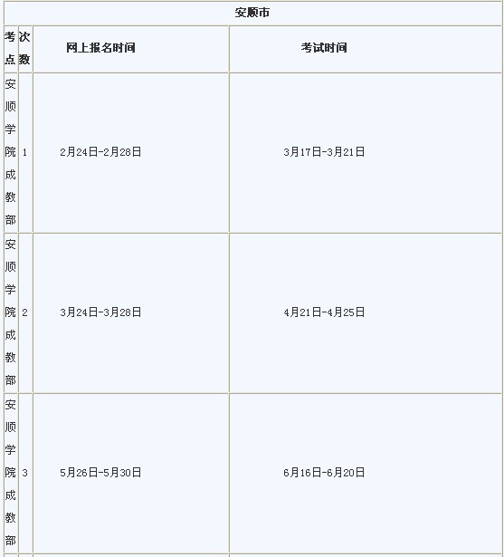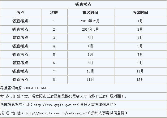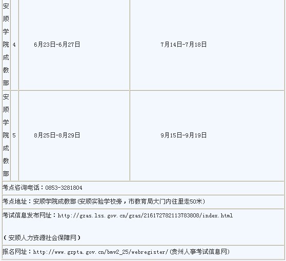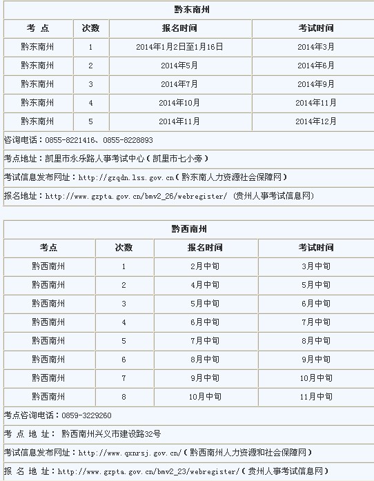 此計劃是結合省直及九個市(州)人事考試實際情況制定,一般不得變動,如遇國家法定節假日、公務員考試、事業單位考試、全國專業資格考試等大型考試需變更考試時間時,我們將及時在“貴州人事考試信息網”通報變更情況,考生可以到網站查詢。具體報名考試時間請以各市、州考試中心發布的通知為準。