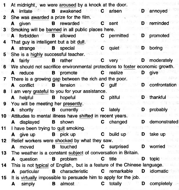 - 重慶2017年職稱英語綜合A類考試考前沖刺練習詞匯選項2017-09-08