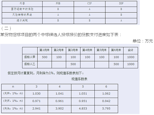 【答 案】:投標人甲合同生效時的價款現值為975.55(萬元),投標人乙合同生效時的價款現值為956.5(萬元)。