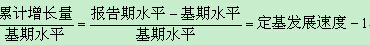定基增長速度=定基發展速度-1=環比發展速度連乘積-1=(1+環比增長速度)連乘積-1