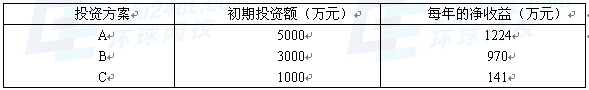 3、經計算得知,當i=10%時,B方案是最優方案,則使上述三個方案都為不可行的(P/A,i,10)數值應小于( )