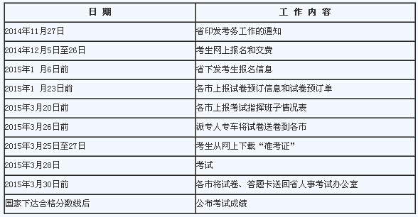 一、考試時間。考試定于2015年3月28日舉行。具體考試時間為:上午 9:00-11:00。