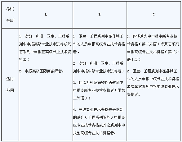 2.申報評審上述系列(專業)以外其他系列(專業)高、中級專業技術資格及申報評審和初定所有系列初級專業技術資格的人員,不作職稱外語考試要求。