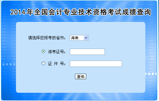 海南2014年中級會計職稱成績查詢入口