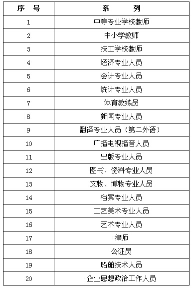 1.申報經濟、會計、新聞等20個系列(專業)專業技術資格,職稱外語不作必備條件(見附件2)。