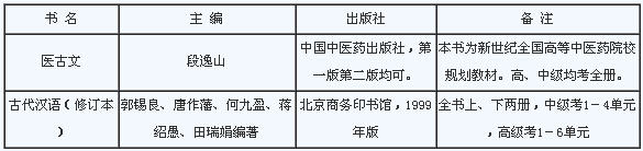 我省自行組織命題的醫古文、古漢語考試教材版本為: