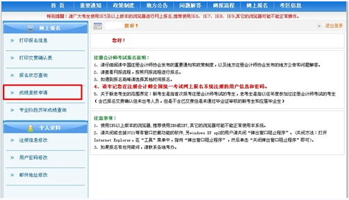 2014年注冊會計師考試成績復核入口