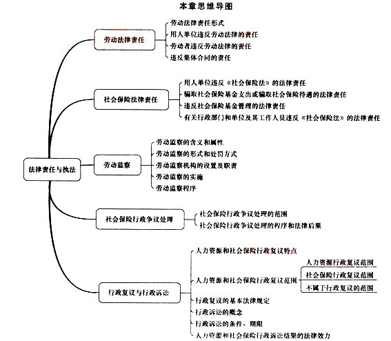 本章主要講述勞動法律責任、社會保險法律責任、勞動監察執法、社會保險行政爭議處理、行政復議和行政訴訟。本章的重點是違反勞動法律的責任,違反社會保險法的法律責任,勞動監察的程序,社會保險行政爭議處理的范圍,社會保險行政復議的范圍等。從近三年的考題來看,以單項選擇題和多項選擇題為主。