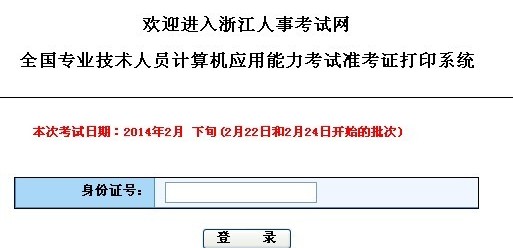 浙江2014年2月下旬職稱計算機準考證打印入口