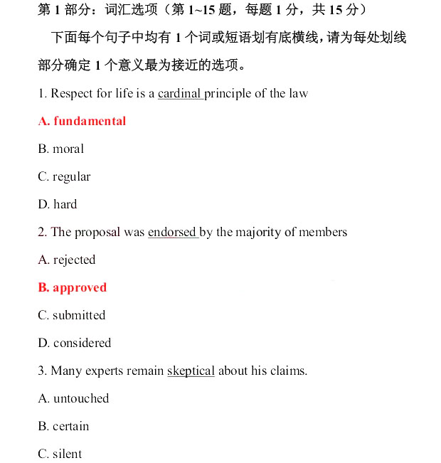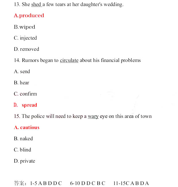 2013職稱英語綜合A類真題及答案之詞匯選項