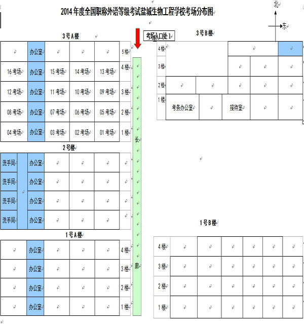 鹽城2014職稱英語考試鹽城生物工程學校考場分布圖