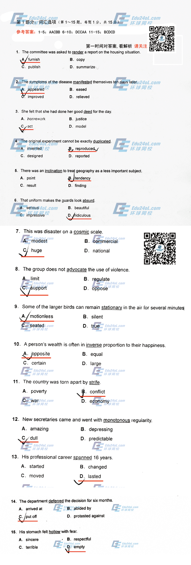 - 職稱英語綜合C概括大意與完成句子真題及答案2017-07-03