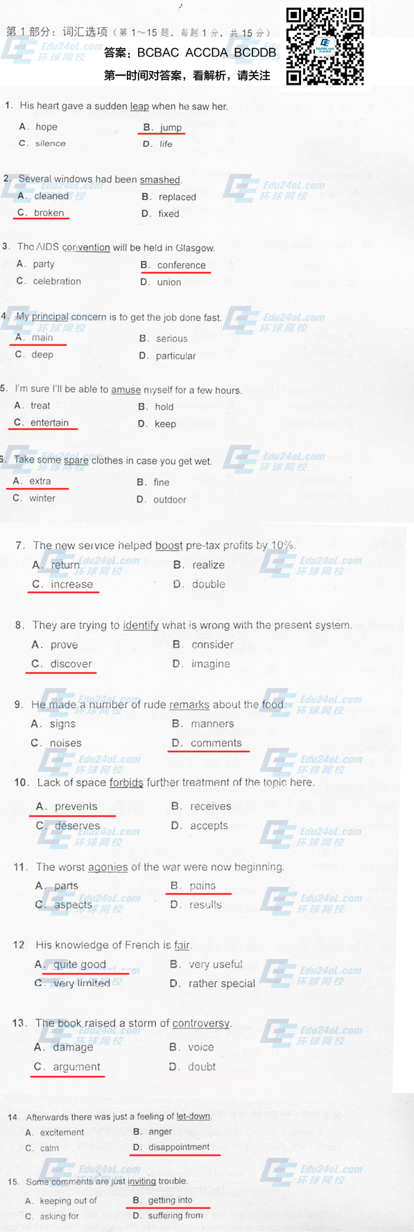 2014年職稱英語綜合類C級試題及答案:詞匯選項
