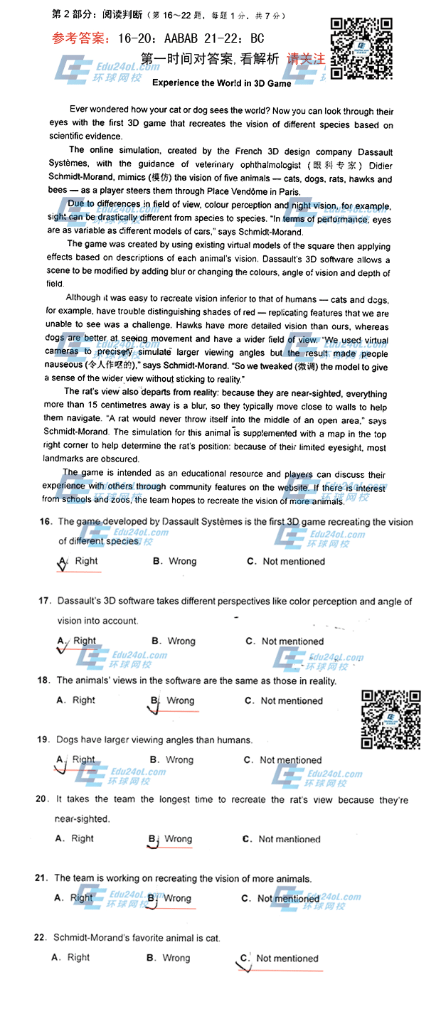 - 職稱英語綜合C閱讀判斷真題及答案2017-07-03