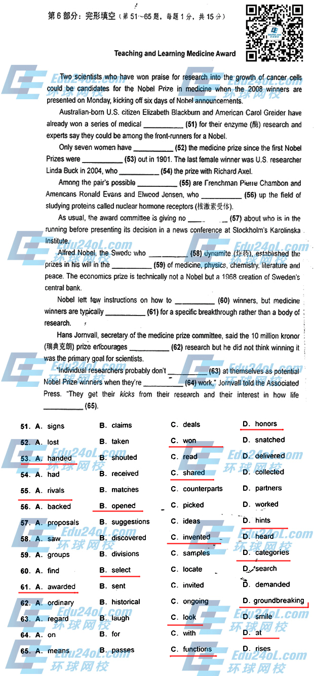 2014年職稱英語衛生類B級試題及答案:完形填空
