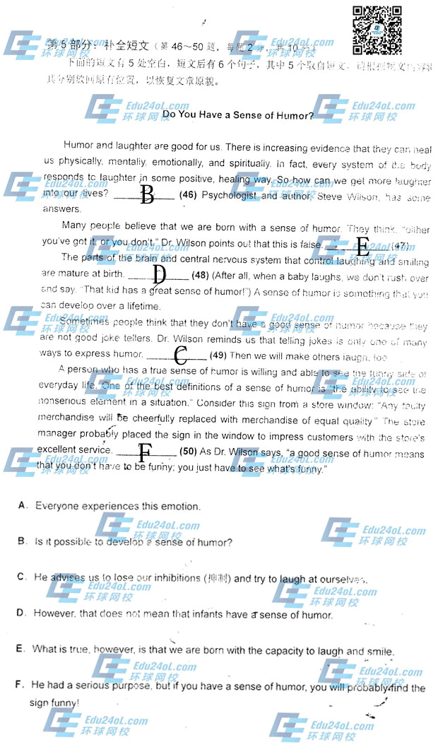 - 職稱英語真題及答案衛生C補全短文2017-06-29