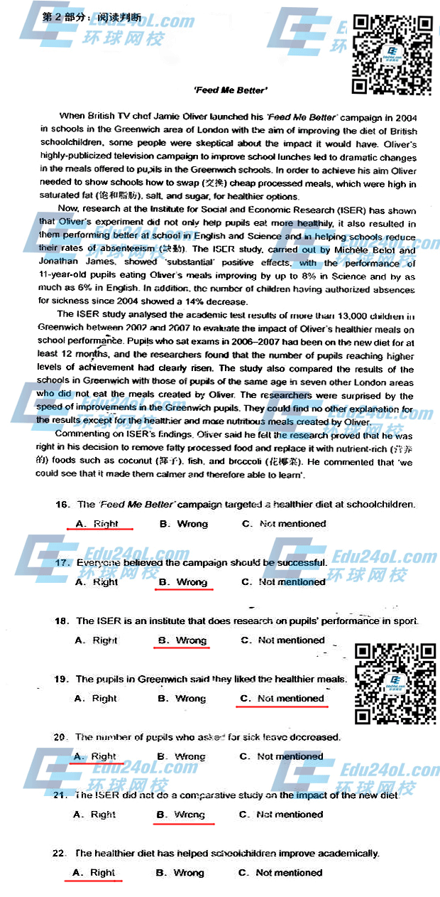 - 職稱英語綜合C閱讀判斷真題及答案2017-07-03