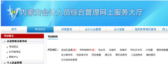 內蒙古巴彥淖爾2014年5月會計從業資格考試報名入口