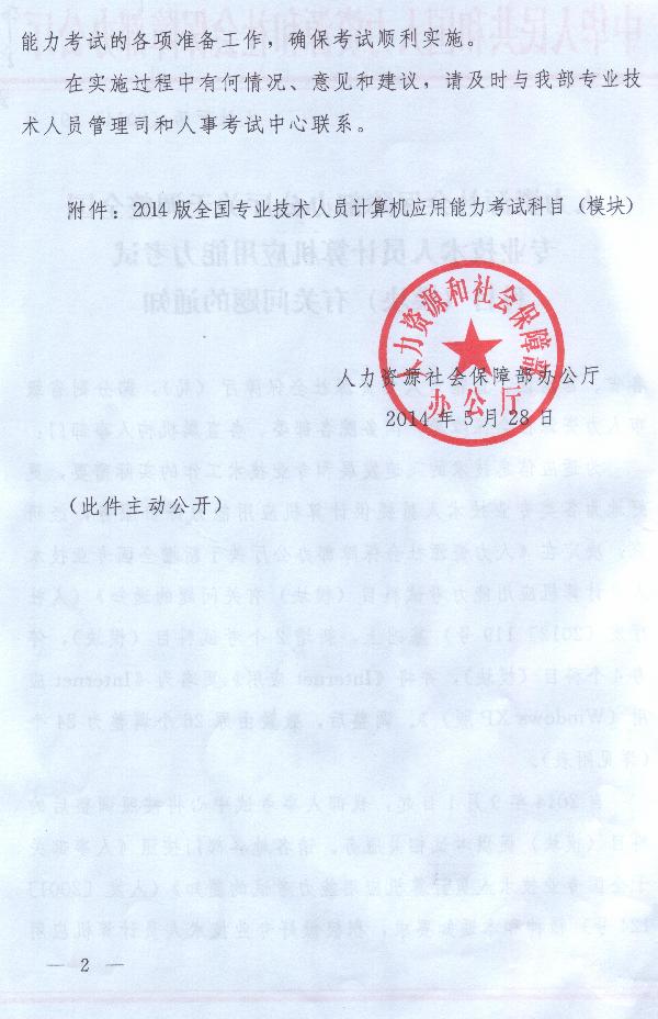 摘要 人力資源社會保障部辦公廳關于調整全國專業技術人員計算機應用能力考試科目(模塊)有關問題的通知