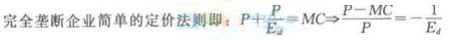 由該式可知,一個壟斷企業索取的價格超過邊際成本的程度,受制于需求價格彈性。當需求價格彈性較低,即 Ed 的絕對值較小時,壟斷者可以確定較高的價格;但是,隨著需求價格彈性的增大,Ed 的絕對值擴大,則價格將非常接近于邊際成本。