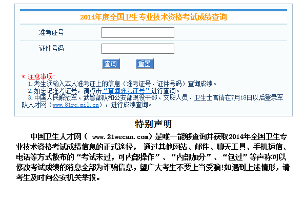 2014年衛生職稱考試成績查詢入口已開通。環球網校醫學考試網第一時間開通2014年衛生職稱考試成績查詢入口供廣大護士考生查詢2014年衛生職稱考試成績。考生可憑借衛生職稱考試準考證號及身份證號點擊2014年衛生職稱考試成績查詢入口鏈接進行查詢。