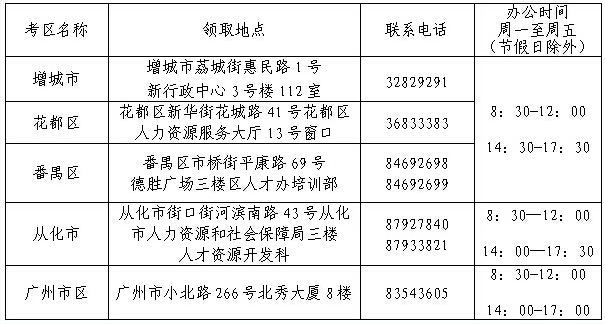 注:在廣東省人事考試局報名的考生,請與廣東省人事考試局聯(lián)系領取(地址:廣州市天河路13號潤粵大廈四樓)。