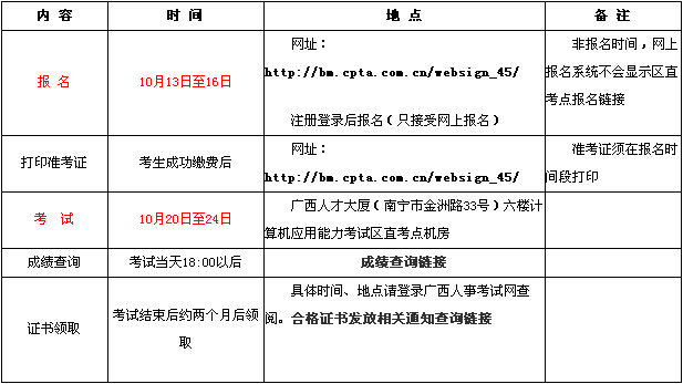 2014年廣西10月份職稱計算機考試通知