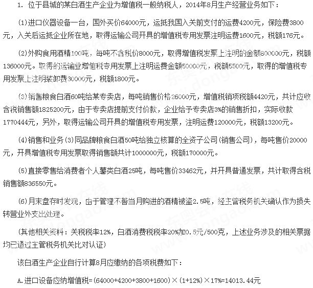 2014年注冊會計師考試《稅法》試題及答案(回憶版)