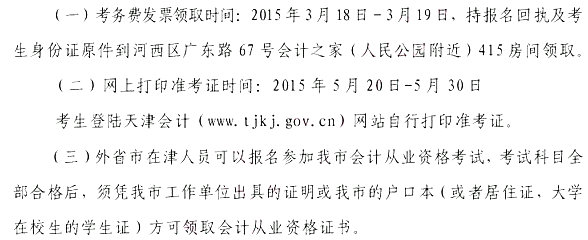 根據(jù)《天津市2015年上半年會(huì)計(jì)從業(yè)資格考試報(bào)名通知》: