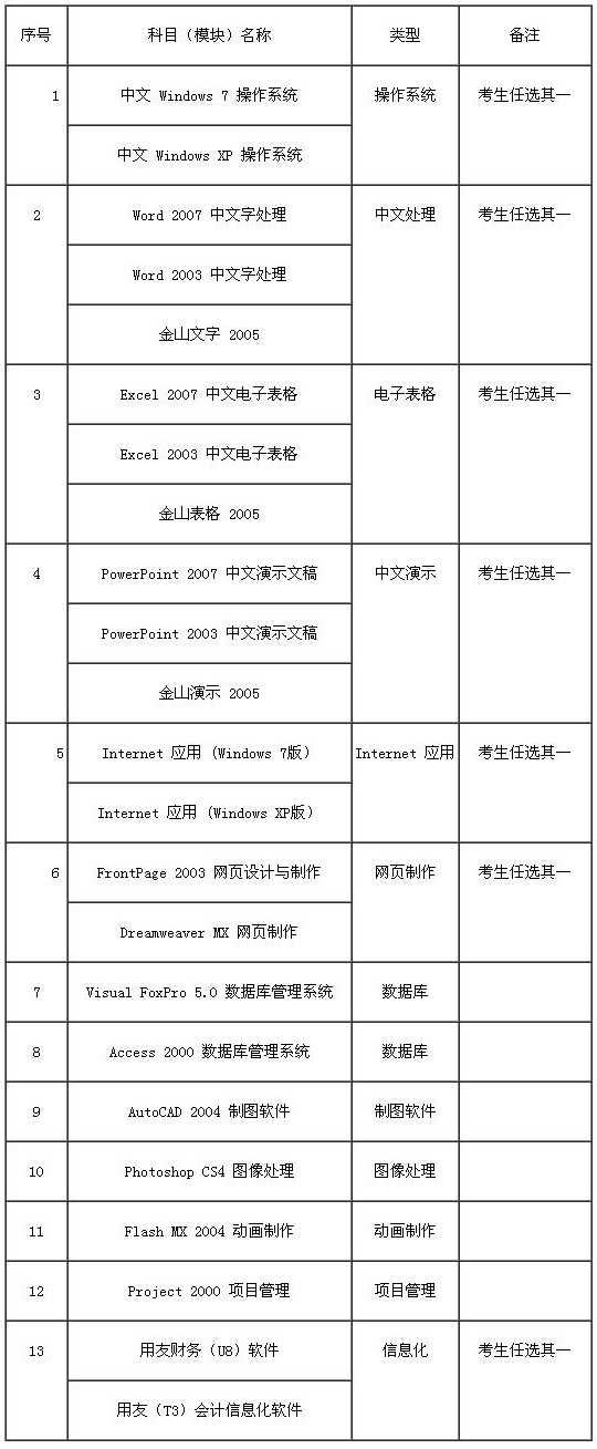 從2015年1月1日起畢節(jié)市專業(yè)技術(shù)人員計(jì)算機(jī)應(yīng)用能力考試將按照變更后的科目(模塊)提供考試相關(guān)服務(wù),變更后的考試系統(tǒng)共有23個(gè)科目(模塊)。