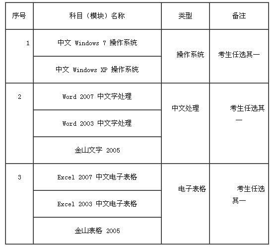 (二)申報(bào)評審中級資格的考3科,其中操作系統(tǒng)、中文處理2科為必考科目,第3科在3―13類中自選。